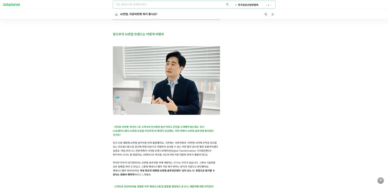 이번 인터뷰는 HR사업총괄 육근식 이사님께서 AI 면접에 대한 의구심을 해소하고 응시자들이 더욱 편안하게 면접에 임할 수 있도록 돕고자 진행되었습니다.